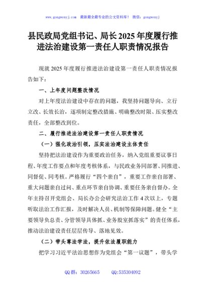 / 县民政局党组书记、局长2025年度履行推进法治建设第一责任人职责情况报告