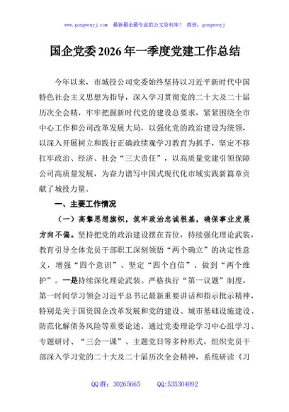 / 国企党委2026年一季度党建工作总结