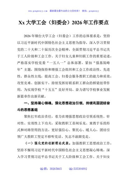 / Xx大学工会(妇委会)2026年工作要点