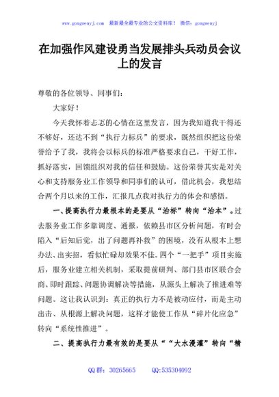 / 在加强作风建设勇当发展排头兵动员会议上的发言