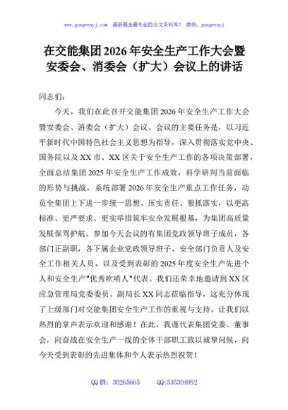 / 在交能集团2026年安全生产工作大会暨安委会、消委会(扩大)会议上的讲话