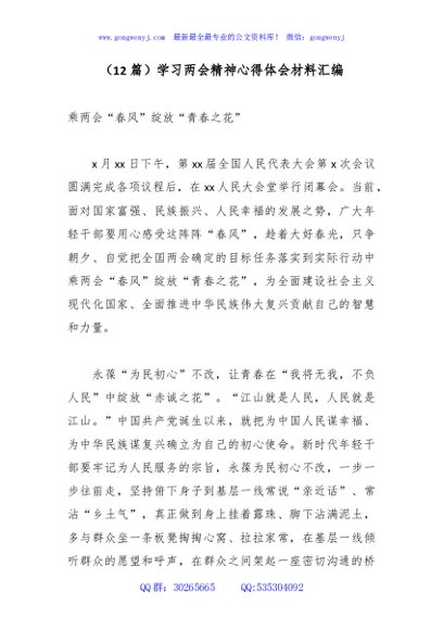 / (12篇)学习两会精神心得体会材料汇编