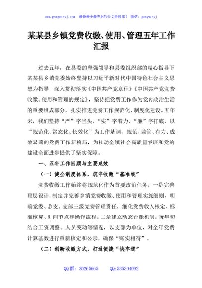 / 某某县乡镇党费收缴、使用、管理五年工作汇报