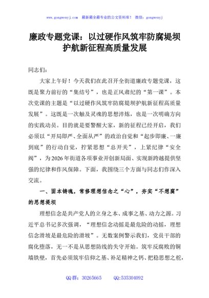 / 廉政专题党课:以过硬作风筑牢防腐堤坝护航新征程高质量发展