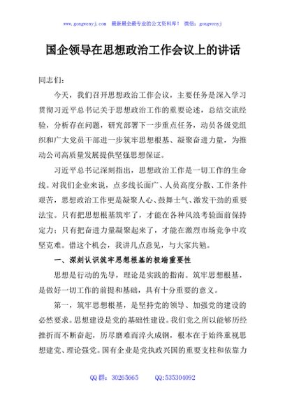 / 国企领导在思想政治工作会议上的讲话
