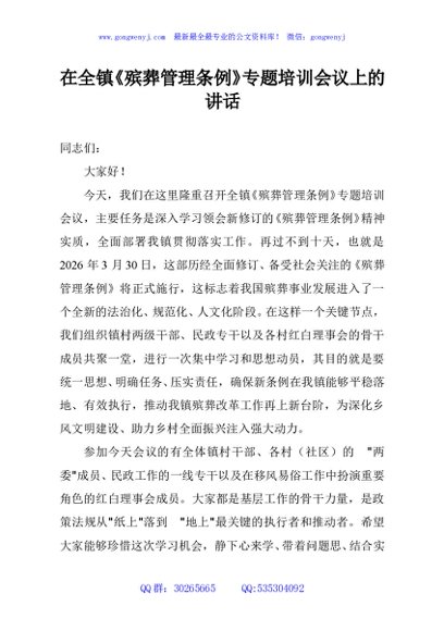 / 在全镇《殡葬管理条例》专题培训会议上的讲话