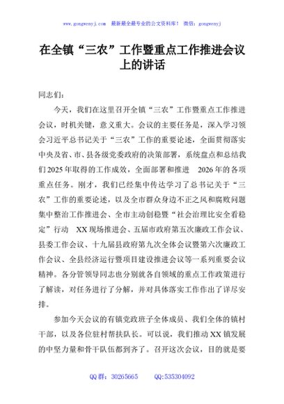 / 在全镇“三农”工作暨重点工作推进会议上的讲话