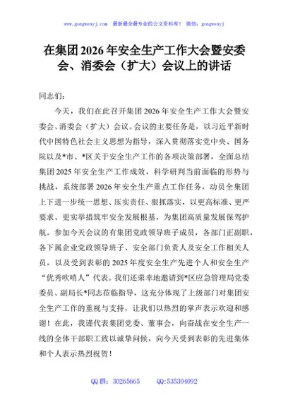 / 在集团2026年安全生产工作大会暨安委会、消委会(扩大)会议上的讲话