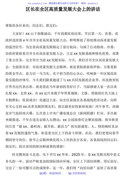/ 区长在全区高质量发展大会上的讲话