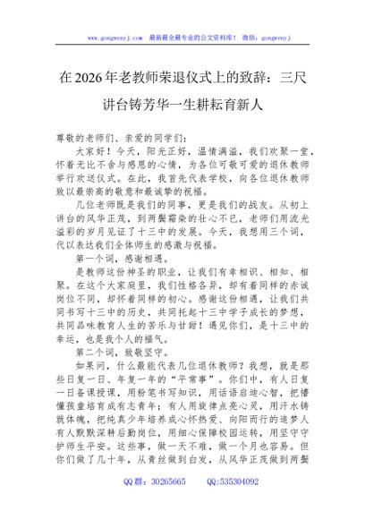 / 在2026年老教师荣退仪式上的致辞:三尺讲台铸芳华一生耕耘育新人