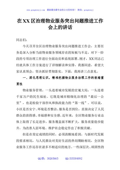 XX市副市长在全市“治理物业服务突出问题”重大民生实事集中整治工作推进会上的讲话