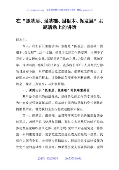 / 在“抓基层、强基础、固根本、促发展”主题活动上的讲话