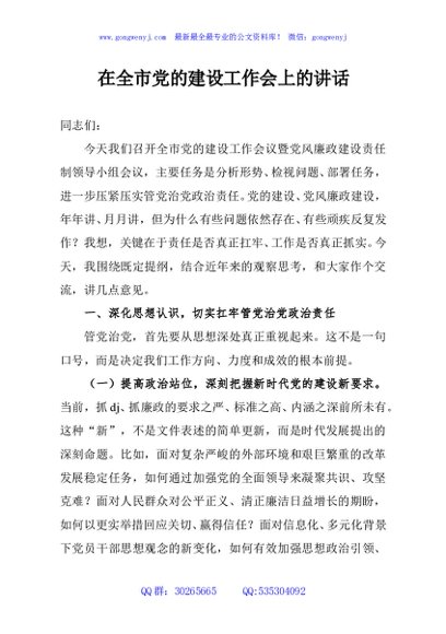 / 在全市党的建设工作会上的讲话
