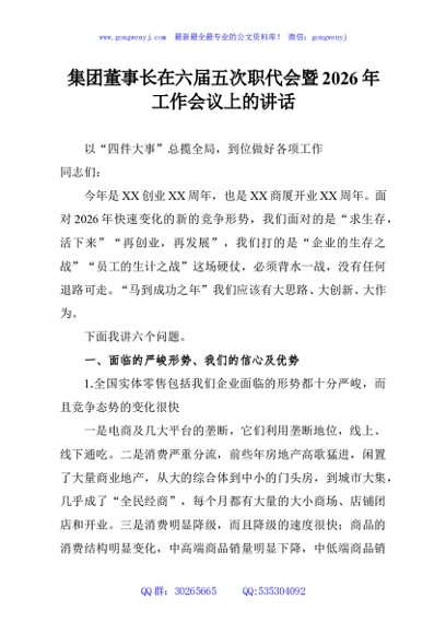 / 集团董事长在六届五次职代会暨2026年工作会议上的讲话