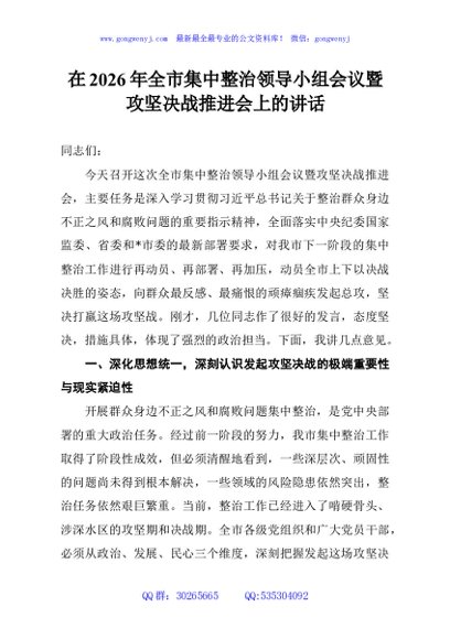 / 在2026年全市集中整治领导小组会议暨攻坚决战推进会上的讲话