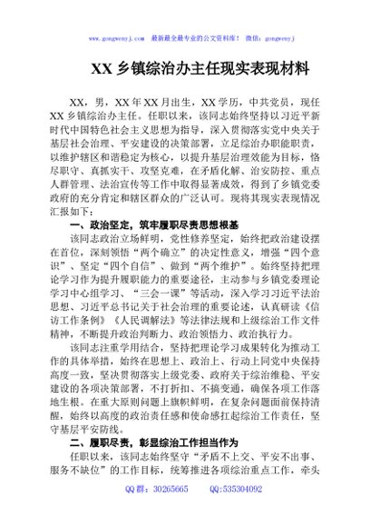 / 乡镇综治办主任现实表现材料