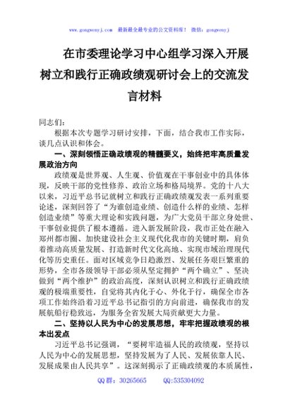 / 在市委理论学习中心组学习深入开展主题教育研讨会上的交流发言材料