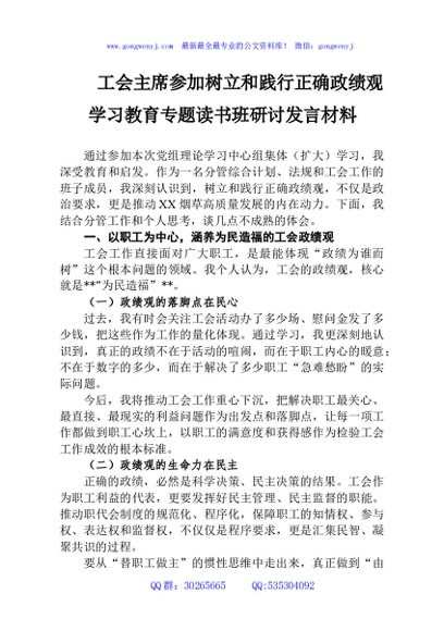 / 工会主席参加树立和践行正确学习教育专题读书班研讨发言材料