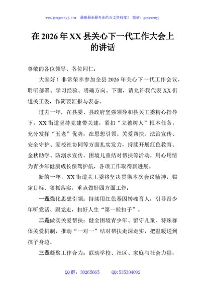 / 在2026年县关心下一代工作大会上的讲话