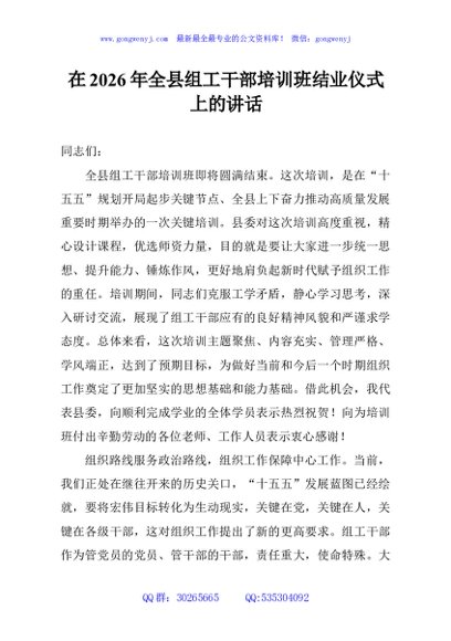 / 在2026年全县组工干部培训班结业仪式上的讲话