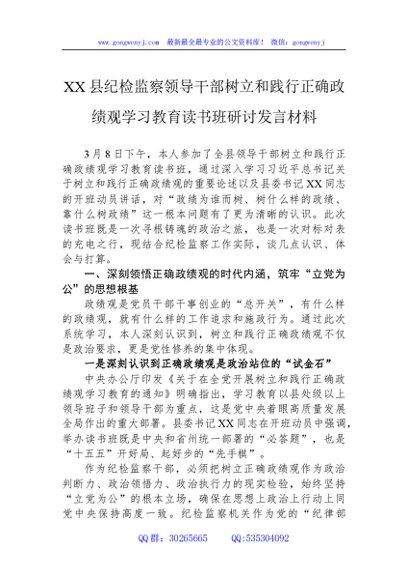 / 县纪检监察领导干部树立和践行正确学习教育读书班研讨发言材料