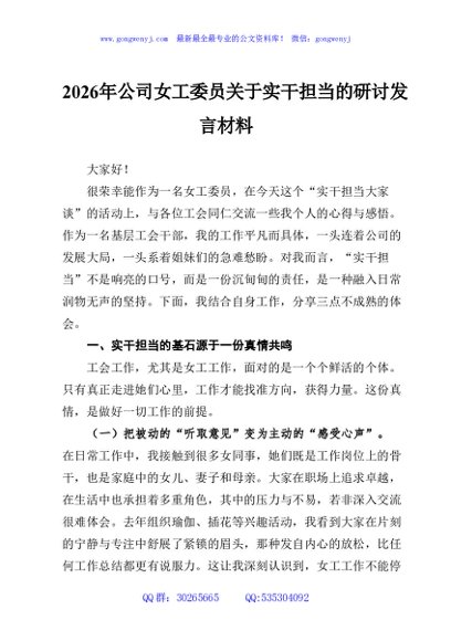 / 2026年公司女工委员实干担当的研讨发言材料
