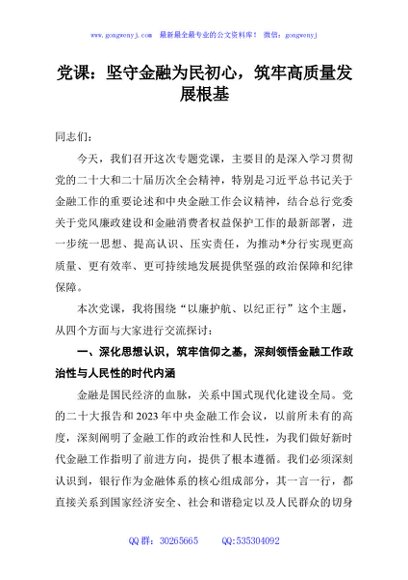 / 党课:坚守金融为民初心,筑牢高质量发展根基