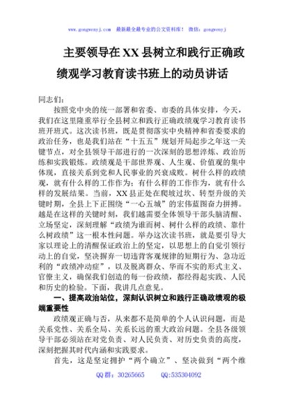/ 主要领导在县树立和践行正确学习教育读书班上的动员讲话
