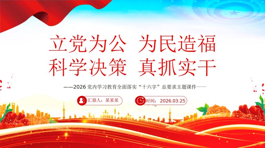 / 党课PPT:立党为公 为民造福 科学决策 真抓实干PPT全面落实“十六字”总要求课件