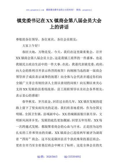 / 镇党委书记在XX镇商会第八届会员大会上的讲话