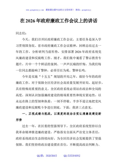 / 在2026年政府廉政工作会议上的讲话