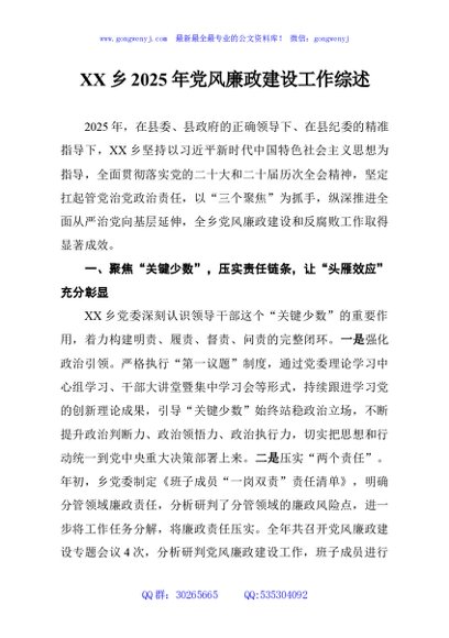 / XX乡2025年党风廉政建设工作综述
