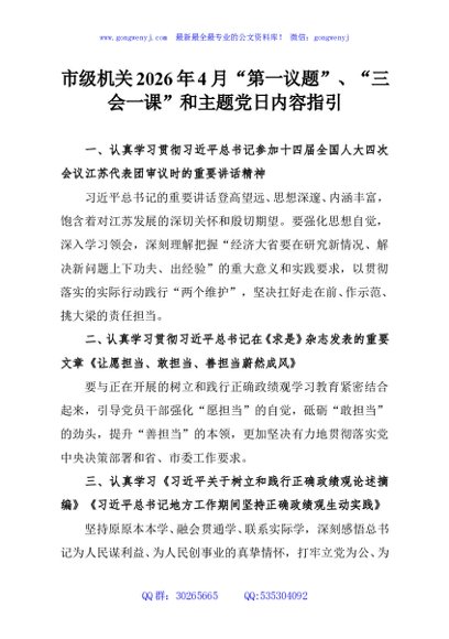 / 市级机关2026年4月“第一议题”、“三会一课”和主题党日内容指引