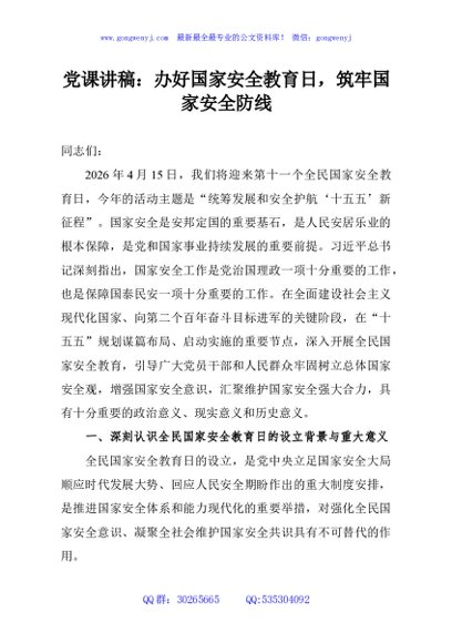 / 党课讲稿:办好国家安全教育日,筑牢国家安全防线