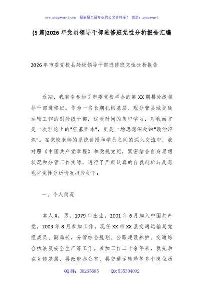 / (5篇)2026年党员领导干部进修班党性分析报告汇编