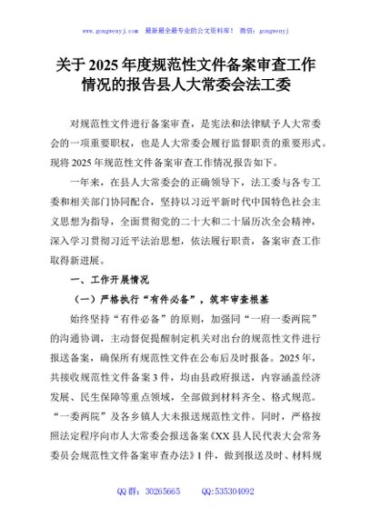 / 关于2025年度规范性文件备案审查工作情况的报告县人大常委会法工委