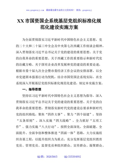 / XX市国资国企系统基层党组织标准化规范化建设实施方案