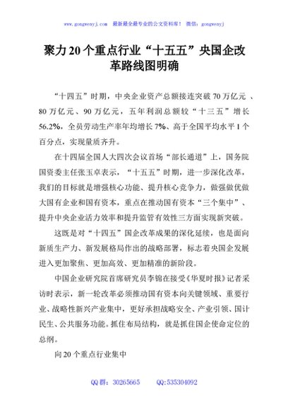 / 聚力20个重点行业“十五五”央国企改革路线图明确