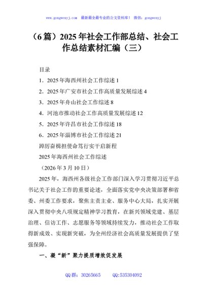 / (6篇)2025年社会工作部总结、社会工作总结素材汇编(三)