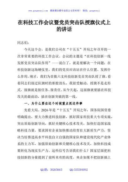 / 在科技工作会议暨党员突击队授旗仪式上的讲话