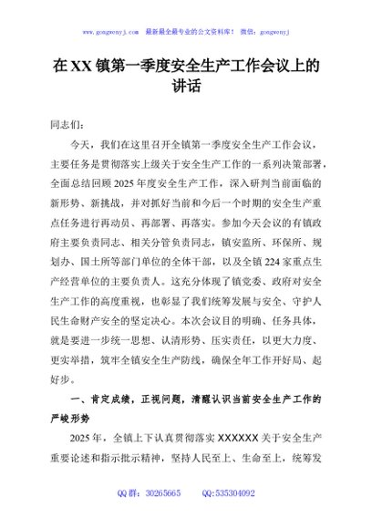 / 在镇第一季度安全生产工作会议上的讲话