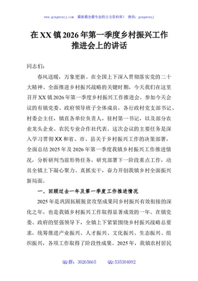 / 在镇2026年第一季度乡村振兴工作推进会上的讲话