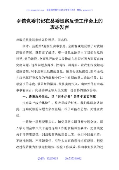 / 乡镇党委书记在县委巡察反馈工作会上的表态发言