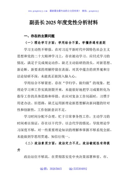 / 副县长2025年度党性分析材料