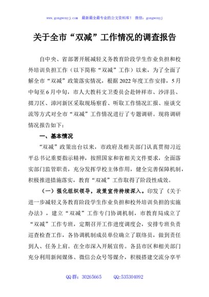 / 关于全市“双减”工作情况的调查报告