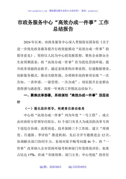 / 市政务服务中心“高效办成一件事”工作总结报告