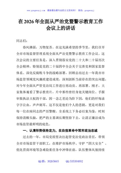 / 在2026年全面从严治党暨警示教育工作会议上的讲话