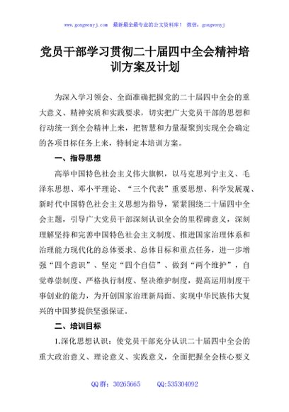 / 党员干部学习贯彻二十届四中全会精神培训方案及计划