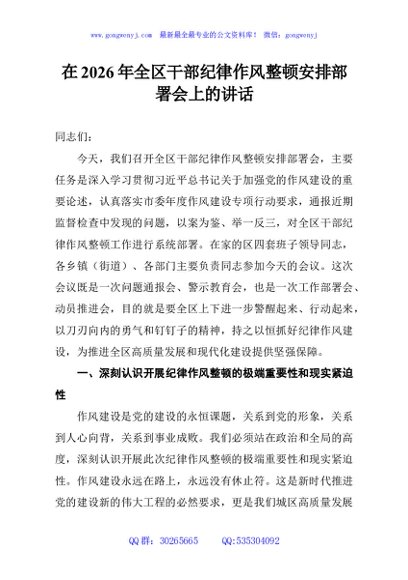 / 在2026年全区干部纪律作风整顿安排部署会上的讲话