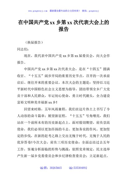 / 在中国共产党xx乡第xx次代表大会上的报告